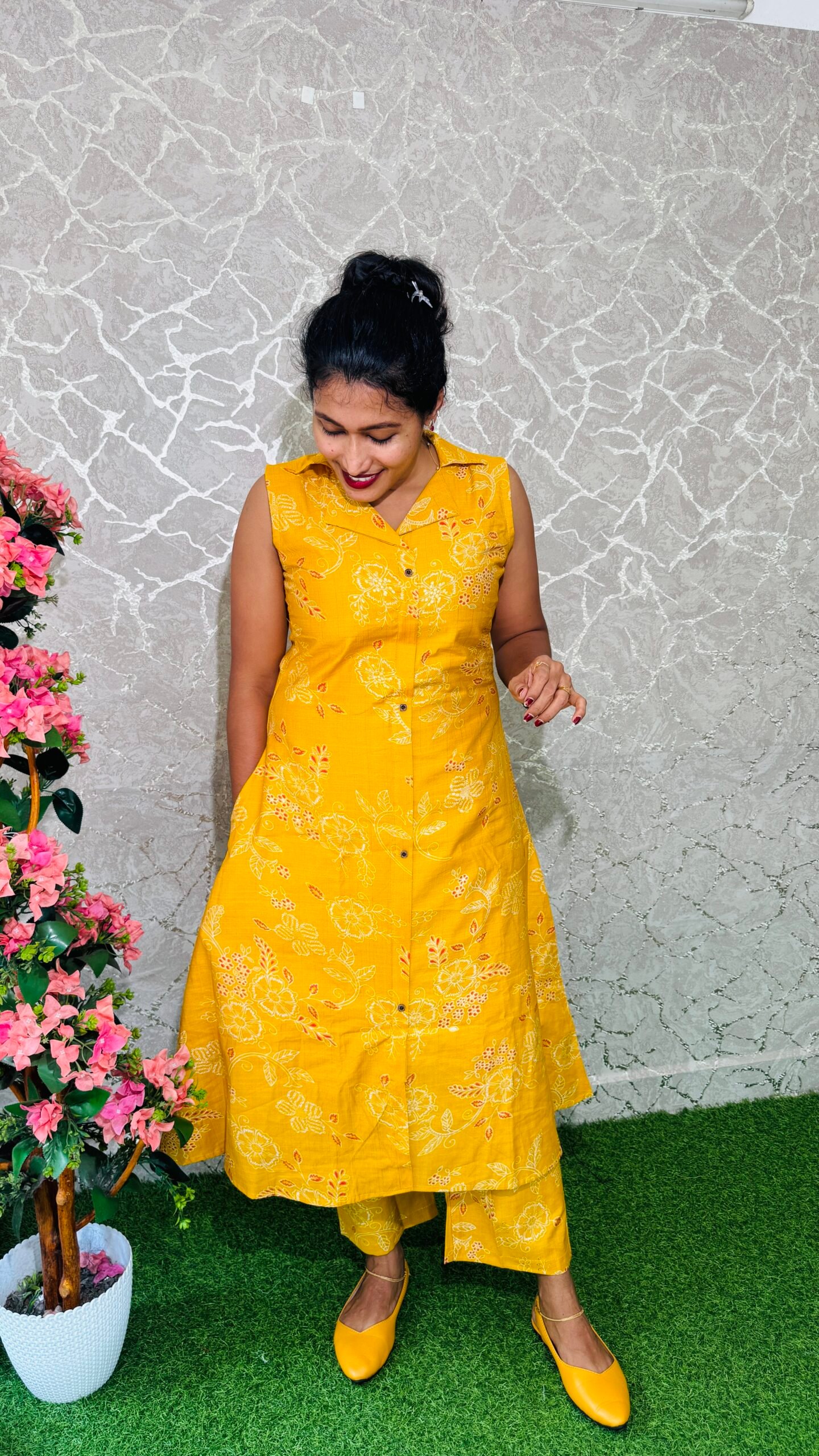 * BEAUTIFUL TWO COLOURS PEACH AND MUSTARD YELLOW GIVES ELEGANT LOOK.