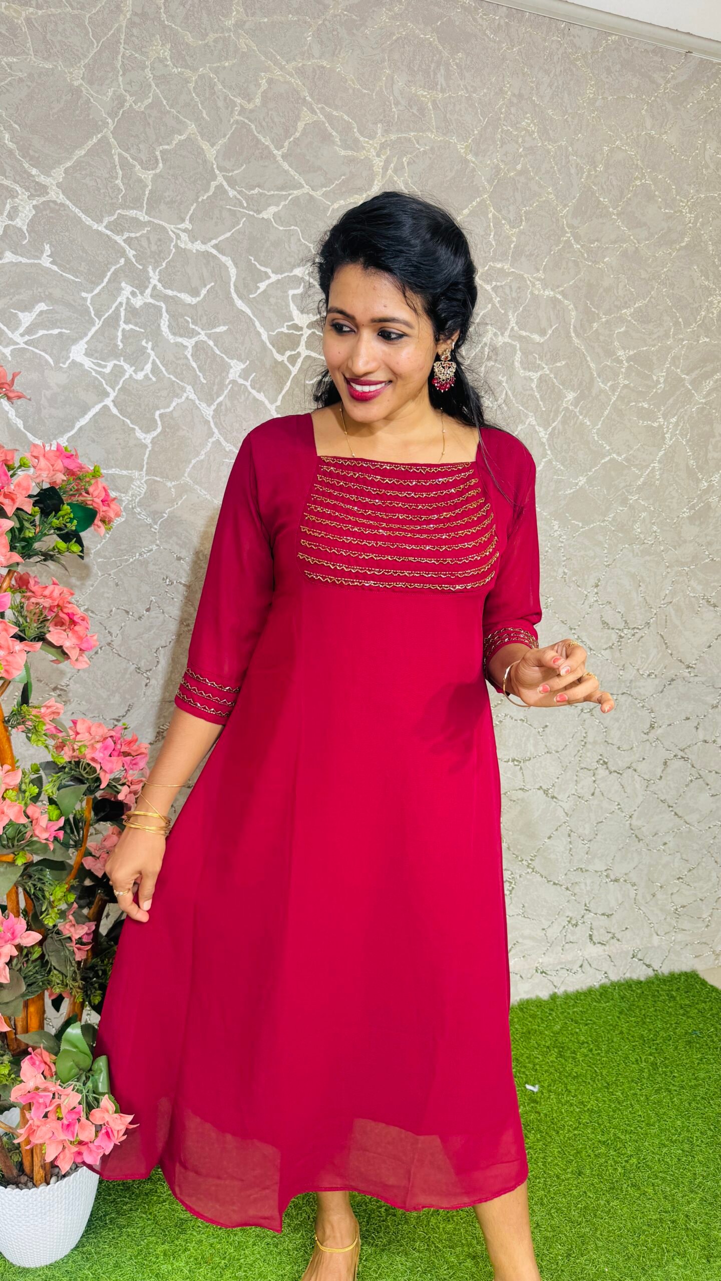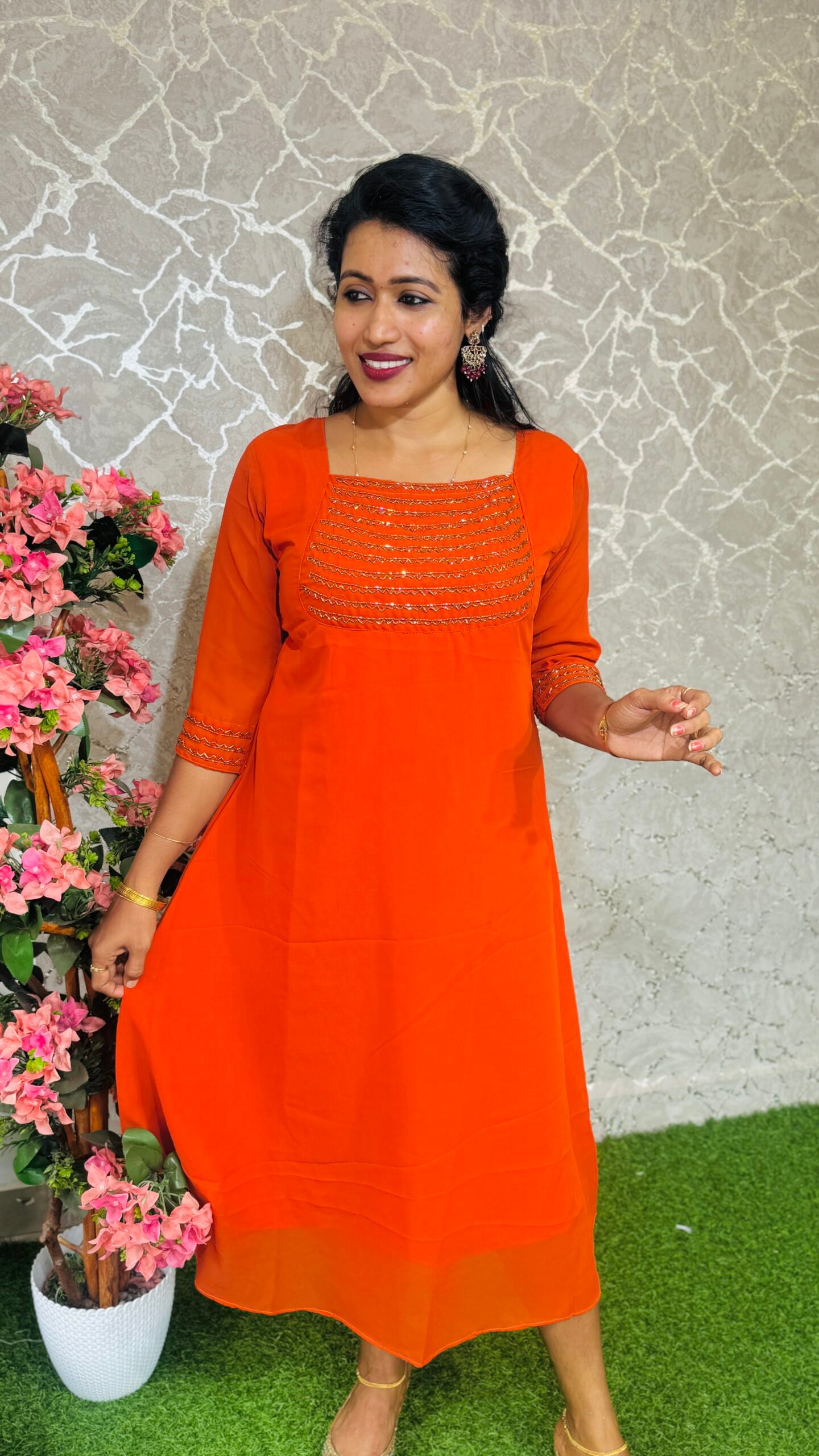* BEAUTIFUL A LINE KURTHI MADE FROM GEORGETTE MATERIAL.